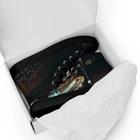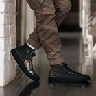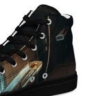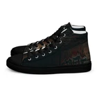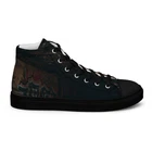 The Metropolis Version UVelsi Shoes are limited edition high top canvas sneakers for men, featuring a lace-up closure and a rubber outsole. Handmade with cushioned comfort, these stylish sneakers are suitable for activewear, casual wear, or workwear. The design is in solid black color with a unique artistic theme, making them a standout choice for various occasions in 2024. Step up your shoe game with the High Top Canvas Shoes. These handmade, trendy shoes are sure to spice up your outfit. Get yours now! • 100% polyester, canvas upper side • Ethylene-vinyl acetate (EVA) rubber outsole • Breathable lining, soft insole • Faux leather toe cap • Padded collar, lace-up front • Soles and laces in matching colors Size guide preview (Imperial) US Men UK Europe Foot Length Japan Outsole Length 5 5 4 37.5 9 ⅛ 23 10 ¼ 6 6 5 38.5 9 ½ 24 10 ⅝ 7 7 6 40 9 ¾ 25 10 ¾ 8 8 7 41 10 ⅛ 26 11 ⅛ 9 9 8 42.5 10 ½ 27 11 ⅝ 10 10 9 44 10 ¾ 28 12.00 11 11 10 45 11 ¼ 29 12 ⅛ 12 12 11 46.5 11 ¾ 30 12 ¾ 13 13 12 47.5 12 31 12 ¾ 5.5 5.5 4.5 38 9 ¼ 23.5 10 ¼ 6.5 6.5 5.5 39 9 ⅝ 24.5 10 ⅝ 7.5 7.5 6.5 40.5 10.00 25.5 11 ⅛ 8.5 8.5 7.5 42 10 ¼ 26.5 11 ⅜ 9.5 9.5 8.5 43 10 ⅝ 27.5 11 ⅝ 10.5 10.5 9.5 44.5 11.00 28.5 12 ⅛ 11.5 11.5 10.5 46 11 ½ 29.5 12 ½ 12.5 12.5 11.5 47 11 ⅞ 30.5 12 ¾ Size guide preview (Metric) US Men UK Europe Foot Length Japan Outsole Length 5 5 4 37.5 23.2 23 26.2 6 6 5 38.5 24.1 24 27 7 7 6 40 24.8 25 27.3 8 8 7 41 25.7 26 28.3 9 9 8 42.5 26.7 27 29.5 10 10 9 44 27.3 28 30.5 11 11 10 45 28.6 29 30.8 12 12 11 46.5 29.9 30 32.4 13 13 12 47.5 30.6 31 32.4 5.5 5.5 4.5 38 23.5 23.5 26.2 6.5 6.5 5.5 39 24.5 24.5 27 7.5 7.5 6.5 40.5 25.4 25.5 28.3 8.5 8.5 7.5 42 26 26.5 29 9.5 9.5 8.5 43 27 27.5 29.5 10.5 10.5 9.5 44.5 28 28.5 30.8 11.5 11.5 10.5 46 29.2 29.5 31.8 12.5 12.5 11.5 47 30.2 30.5 32.4