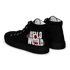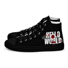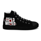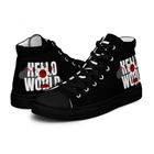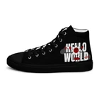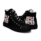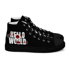 The UVelsi Black Core Hello World Edition Shoes are premium high top canvas sneakers designed for men. Featuring a black color and a high top shoe shaft style, these athletic shoes are highly customizable and handmade. The shoes come in UK sizes 4-12 and EU sizes 37-48, with a standard shoe width. They are cushioned, lightweight, and limited edition, suitable for various activities such as basketball, running, gym training, and more. The design theme includes elements like art, biker, Italian, American, and modern, making them versatile for different occasions and styles. Step up your shoe game with the High Top Canvas Shoes. These handmade, trendy shoes are sure to spice up your outfit. Get yours now! • 100% polyester, canvas upper side • Ethylene-vinyl acetate (EVA) rubber outsole • Breathable lining, soft insole • Faux leather toe cap • Padded collar, lace-up front • Soles and laces in matching colors Size guide preview (Imperial) US Men UK Europe Foot Length Japan Outsole Length 5 5 4 37.5 9 ⅛ 23 10 ¼ 6 6 5 38.5 9 ½ 24 10 ⅝ 7 7 6 40 9 ¾ 25 10 ¾ 8 8 7 41 10 ⅛ 26 11 ⅛ 9 9 8 42.5 10 ½ 27 11 ⅝ 10 10 9 44 10 ¾ 28 12.00 11 11 10 45 11 ¼ 29 12 ⅛ 12 12 11 46.5 11 ¾ 30 12 ¾ 13 13 12 47.5 12 31 12 ¾ 5.5 5.5 4.5 38 9 ¼ 23.5 10 ¼ 6.5 6.5 5.5 39 9 ⅝ 24.5 10 ⅝ 7.5 7.5 6.5 40.5 10.00 25.5 11 ⅛ 8.5 8.5 7.5 42 10 ¼ 26.5 11 ⅜ 9.5 9.5 8.5 43 10 ⅝ 27.5 11 ⅝ 10.5 10.5 9.5 44.5 11.00 28.5 12 ⅛ 11.5 11.5 10.5 46 11 ½ 29.5 12 ½ 12.5 12.5 11.5 47 11 ⅞ 30.5 12 ¾ Size guide preview (Metric) US Men UK Europe Foot Length Japan Outsole Length 5 5 4 37.5 23.2 23 26.2 6 6 5 38.5 24.1 24 27 7 7 6 40 24.8 25 27.3 8 8 7 41 25.7 26 28.3 9 9 8 42.5 26.7 27 29.5 10 10 9 44 27.3 28 30.5 11 11 10 45 28.6 29 30.8 12 12 11 46.5 29.9 30 32.4 13 13 12 47.5 30.6 31 32.4 5.5 5.5 4.5 38 23.5 23.5 26.2 6.5 6.5 5.5 39 24.5 24.5 27 7.5 7.5 6.5 40.5 25.4 25.5 28.3 8.5 8.5 7.5 42 26 26.5 29 9.5 9.5 8.5 43 27 27.5 29.5 10.5 10.5 9.5 44.5 28 28.5 30.8 11.5 11.5 10.5 46 29.2 29.5 31.8 12.5 12.5 11.5 47 30.2 30.5 32.4