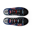 Elevate your footwear game with the UVelsi UiLux USA Edition Sneakers. Crafted with a sleek black canvas upper and a durable rubber outsole, these high-top sneakers offer both style and comfort. Designed for the active man, they feature a padded insole with faux fur lining to keep your feet warm and cozy in any season. With a versatile lace-up closure, these shoes are made for a range of occasions, whether you're hitting the gym or just out for a casual stroll. The UVelsi UiLux sneakers are not just about looks; they're built for performance too, with their adjustable steel toe and versatile cleat type suitable for various athletic activities. These lightweight, limited-edition kicks also boast a solid pattern that pairs effortlessly with any outfit. Handmade with care and attention to detail, these sneakers embody the essence of American craftsmanship, making them a standout addition to any collection. Step up your shoe game with the High Top Canvas Shoes. These handmade, trendy shoes are sure to spice up your outfit. Get yours now! • 100% polyester, canvas upper side • Ethylene-vinyl acetate (EVA) rubber outsole • Breathable lining, soft insole • Faux leather toe cap • Padded collar, lace-up front • Soles and laces in matching colors Size guide preview (Imperial) US Men UK Europe Foot Length Japan Outsole Length 8 8 7 41 10 ⅛ 26 11 ⅛ 9 9 8 42.5 10 ½ 27 11 ⅝ 10 10 9 44 10 ¾ 28 12.00 11 11 10 45 11 ¼ 29 12 ⅛ 12 12 11 46.5 11 ¾ 30 12 ¾ 7.5 7.5 6.5 40.5 10.00 25.5 11 ⅛ 8.5 8.5 7.5 42 10 ¼ 26.5 11 ⅜ 9.5 9.5 8.5 43 10 ⅝ 27.5 11 ⅝ 10.5 10.5 9.5 44.5 11.00 28.5 12 ⅛ 11.5 11.5 10.5 46 11 ½ 29.5 12 ½ Size guide preview (Metric) US Men UK Europe Foot Length Japan Outsole Length 8 8 7 41 25.7 26 28.3 9 9 8 42.5 26.7 27 29.5 10 10 9 44 27.3 28 30.5 11 11 10 45 28.6 29 30.8 12 12 11 46.5 29.9 30 32.4 7.5 7.5 6.5 40.5 25.4 25.5 28.3 8.5 8.5 7.5 42 26 26.5 29 9.5 9.5 8.5 43 27 27.5 29.5 10.5 10.5 9.5 44.5 28 28.5 30.8 11.5 11.5 10.5 46 29.2 29.5 31.8