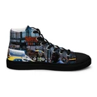 These UVelsi USA New York Edition Canvas High Top Men's Shoes are premium sneakers featuring a lace-up closure, cushioned comfort, lightweight design, and a limited edition New York theme. Handmade with vegan materials, they are designed for various activities like basketball, gym training, and outdoor wear. The shoes have a black color with a solid pattern and a high-top sneaker style, making them a stylish and versatile choice for casual or workwear occasions. Step up your shoe game with the High Top Canvas Shoes. These handmade, trendy shoes are sure to spice up your outfit. Get yours now! • 100% polyester, canvas upper side • Ethylene-vinyl acetate (EVA) rubber outsole • Breathable lining, soft insole • Faux leather toe cap • Padded collar, lace-up front • Soles and laces in matching colors Size guide preview (Imperial) US Men UK Europe Foot Length Japan Outsole Length 5 5 4 37.5 9 ⅛ 23 10 ¼ 6 6 5 38.5 9 ½ 24 10 ⅝ 7 7 6 40 9 ¾ 25 10 ¾ 8 8 7 41 10 ⅛ 26 11 ⅛ 9 9 8 42.5 10 ½ 27 11 ⅝ 10 10 9 44 10 ¾ 28 12.00 11 11 10 45 11 ¼ 29 12 ⅛ 12 12 11 46.5 11 ¾ 30 12 ¾ 13 13 12 47.5 12 31 12 ¾ 5.5 5.5 4.5 38 9 ¼ 23.5 10 ¼ 6.5 6.5 5.5 39 9 ⅝ 24.5 10 ⅝ 7.5 7.5 6.5 40.5 10.00 25.5 11 ⅛ 8.5 8.5 7.5 42 10 ¼ 26.5 11 ⅜ 9.5 9.5 8.5 43 10 ⅝ 27.5 11 ⅝ 10.5 10.5 9.5 44.5 11.00 28.5 12 ⅛ 11.5 11.5 10.5 46 11 ½ 29.5 12 ½ 12.5 12.5 11.5 47 11 ⅞ 30.5 12 ¾ Size guide preview (Metric) US Men UK Europe Foot Length Japan Outsole Length 5 5 4 37.5 23.2 23 26.2 6 6 5 38.5 24.1 24 27 7 7 6 40 24.8 25 27.3 8 8 7 41 25.7 26 28.3 9 9 8 42.5 26.7 27 29.5 10 10 9 44 27.3 28 30.5 11 11 10 45 28.6 29 30.8 12 12 11 46.5 29.9 30 32.4 13 13 12 47.5 30.6 31 32.4 5.5 5.5 4.5 38 23.5 23.5 26.2 6.5 6.5 5.5 39 24.5 24.5 27 7.5 7.5 6.5 40.5 25.4 25.5 28.3 8.5 8.5 7.5 42 26 26.5 29 9.5 9.5 8.5 43 27 27.5 29.5 10.5 10.5 9.5 44.5 28 28.5 30.8 11.5 11.5 10.5 46 29.2 29.5 31.8 12.5 12.5 11.5 47 30.2 30.5 32.4