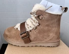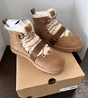 Elevate your winter style with these UGG Dune Mini Buckle Boots. Made with high-quality shearling fabric, these boots are perfect for keeping your feet warm and comfortable. The lace-up closure ensures a snug fit while the medium width makes them suitable for most foot sizes. These boots are designed for both travel and casual occasions, and their chestnut color complements any winter outfit. Made in Australia with suede upper material, these boots are durable and long-lasting. Add a touch of elegance to your winter wardrobe with these beautiful UGG boots. I’ve been told Uggs tend to run smaller in size so please be sure a size 8 will fit you comfortably. If you would like more photos please feel free to let me know. Thank you !