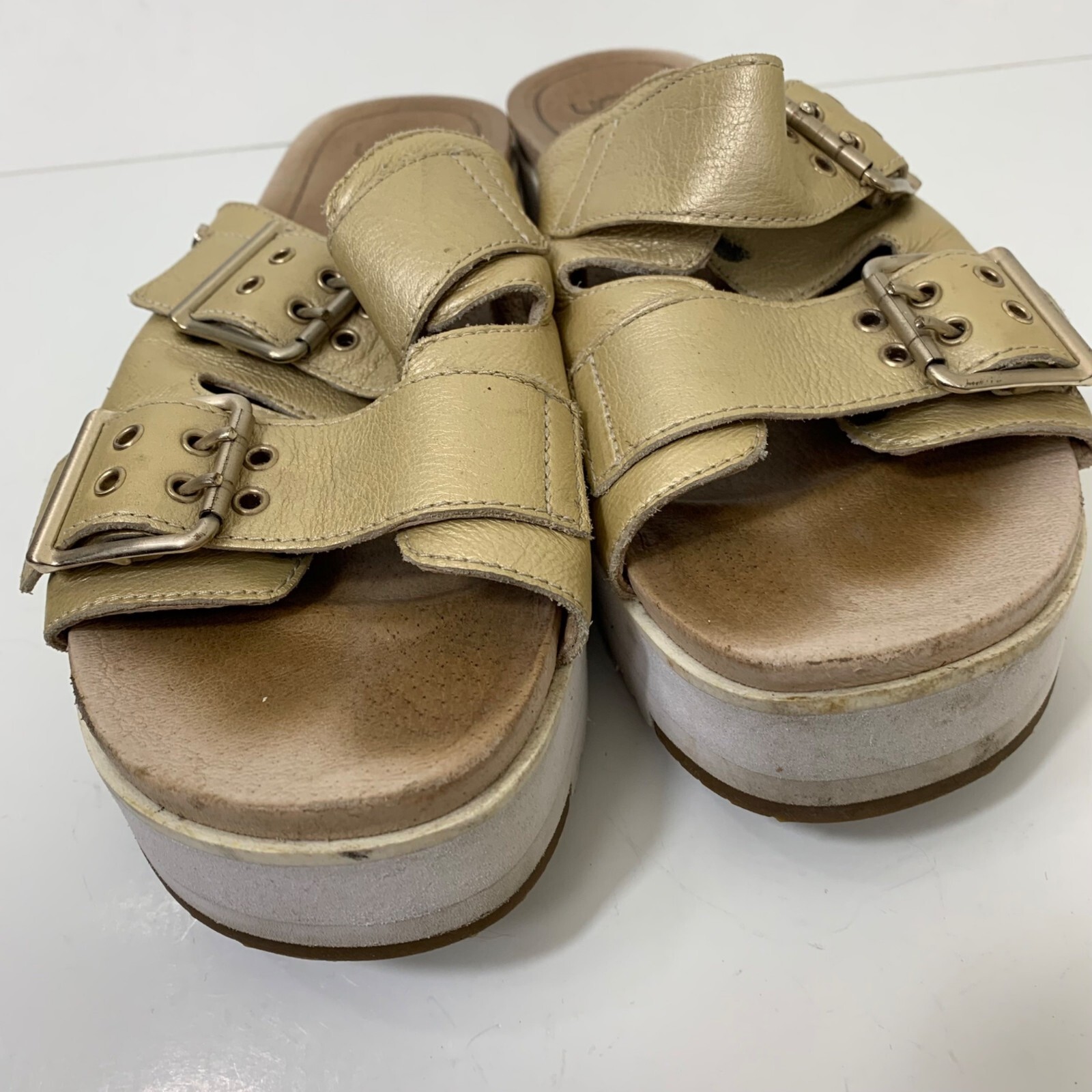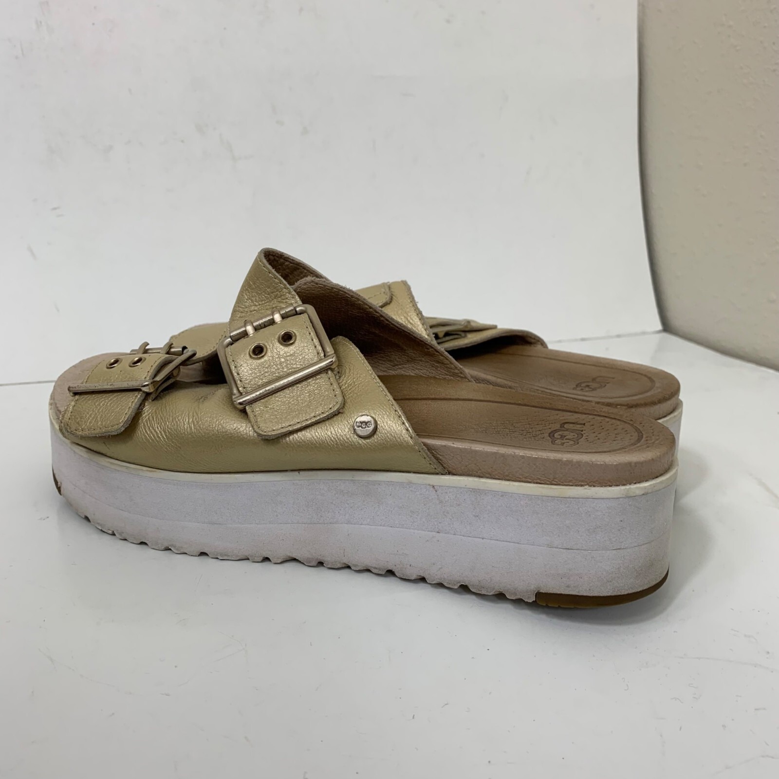 Ugg Cammie Metallic Slide Platform Sandals Gold - Size 8 Great preowned condition! 1.75” platform Dual buckle closure Slip on style Patent leather 1P40 28-2846 1 lb 6 oz Tags: casual, Lightweight, everyday, preppy,