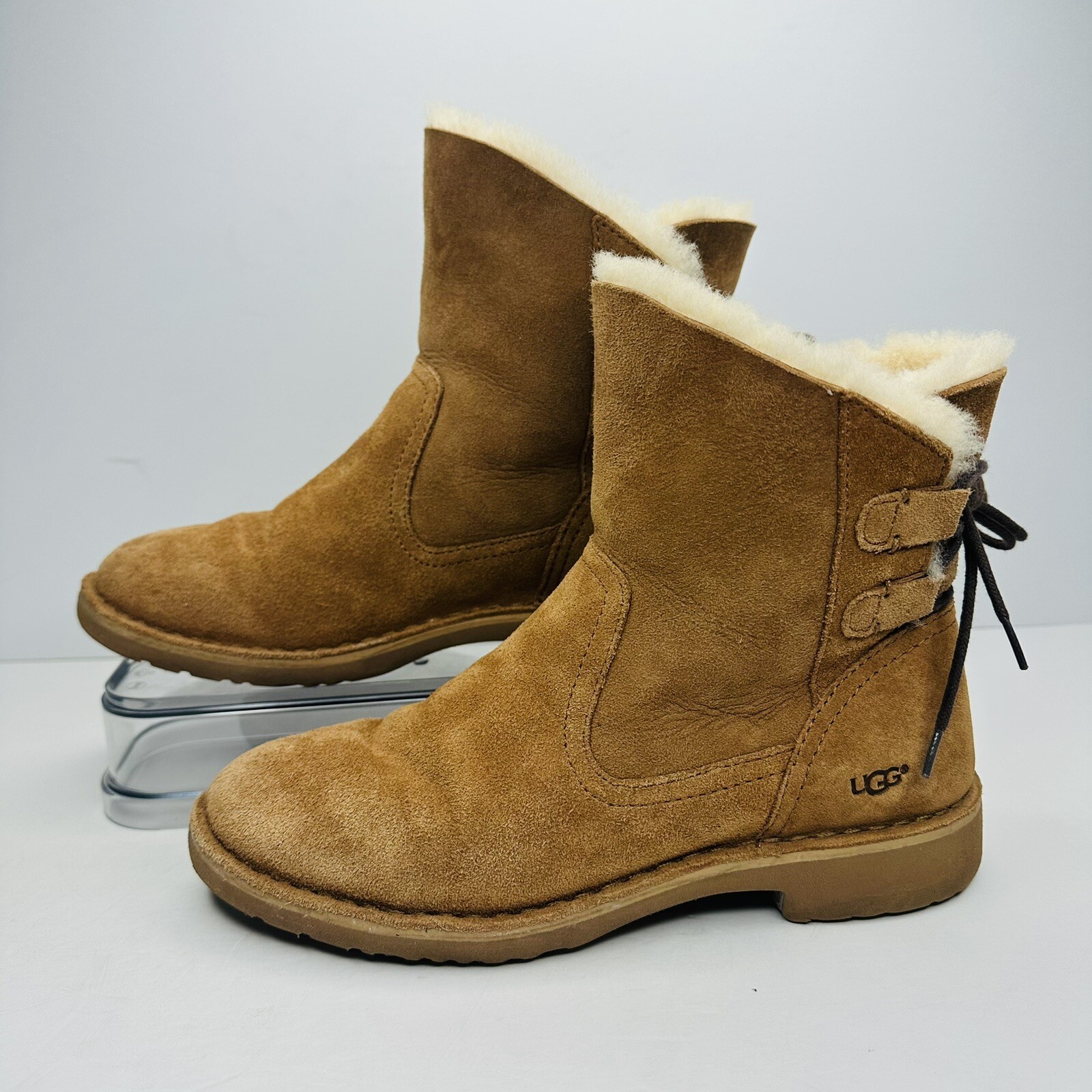 Ugg Naiyah Back Lace Shearling Boots Womens Size 7 Brown Suede Boots 1020144. Great used condition. See pictures for details.