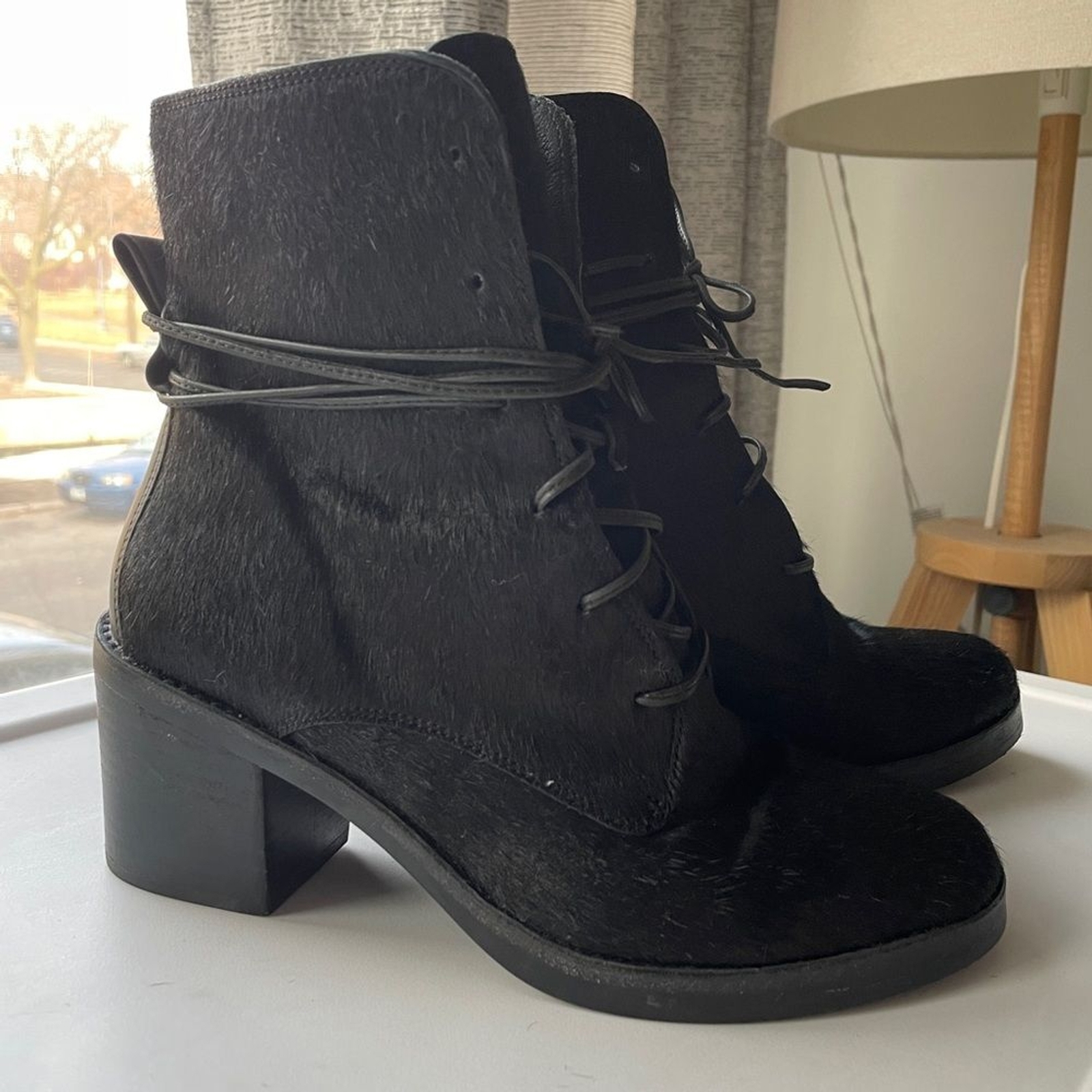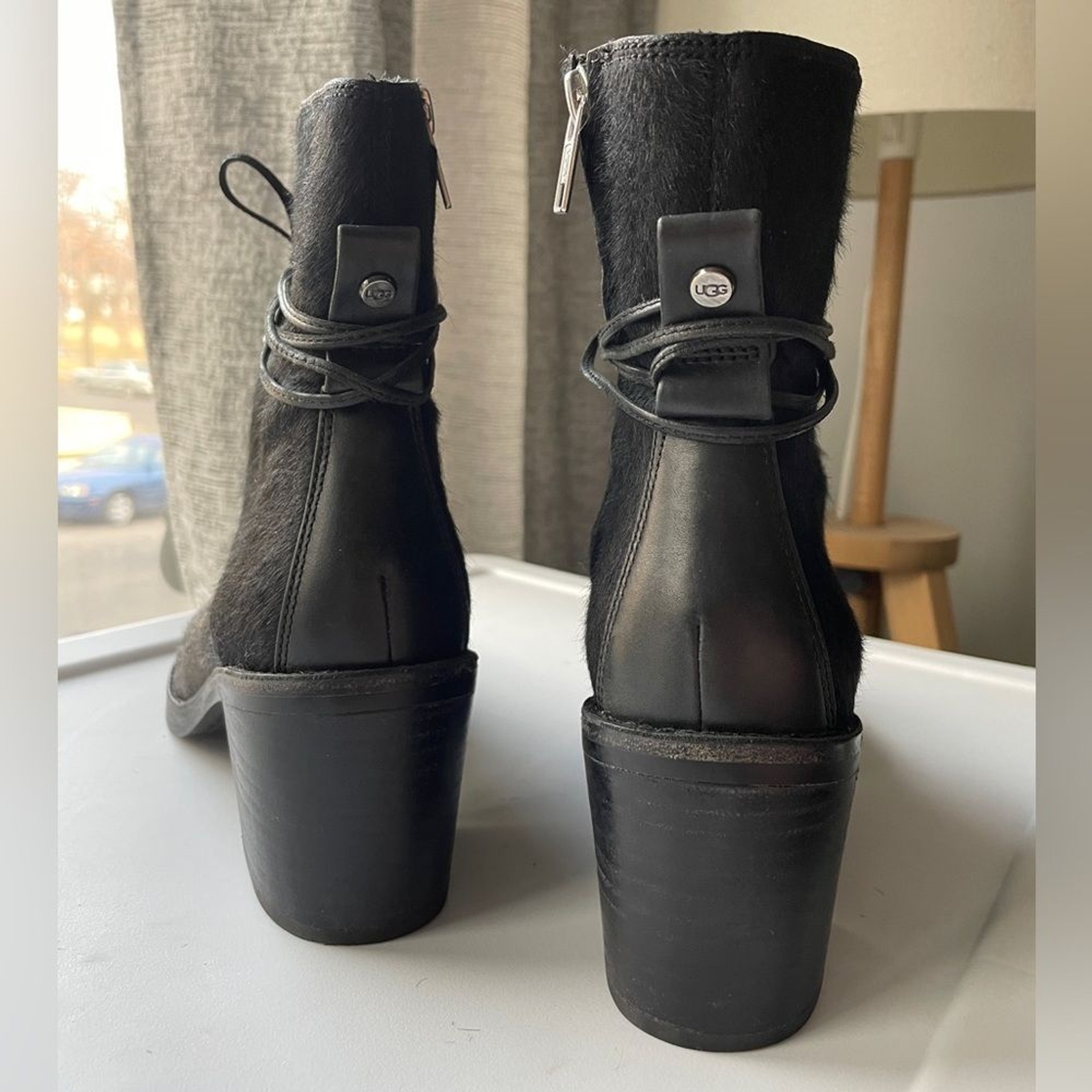 Color:BlackDepartment:WomenUS Shoe Size:7Brand:UGGStyle:Lace UpUpper Material:CalfhairSeller Notes:“Condition: EUC - some scuffing on bottom of shoes, but otherwise in like new condition!”