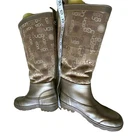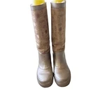 Vintage Ugg Women's 5700 Gold Rubber Textile Round Toe Knee High Rain Boots Sz 7 Brand: Ugg Department: Women MPN: 5700 Type: Boot Style: Rain Boot Color: Gold US Size: US 7 UK Size: UK 5.5 Pattern: Solid Closure: Pull On Theme: Classic Features: Comfort, Breathable Occasion: Casual Season: Fall, Winter Shoe Shaft Style: Knee High Toe Shape: Round Toe Country/Region of Manufacture: China Condition: Pre-owned, Some glue showing. Two cracks in rubber at back of boot. See photos. Can be worn as is. Still great boots with some wear/scuffing to rubber.
