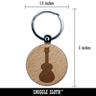 Ukulele Solid Engraved Wood Round Keychain Tag Charm