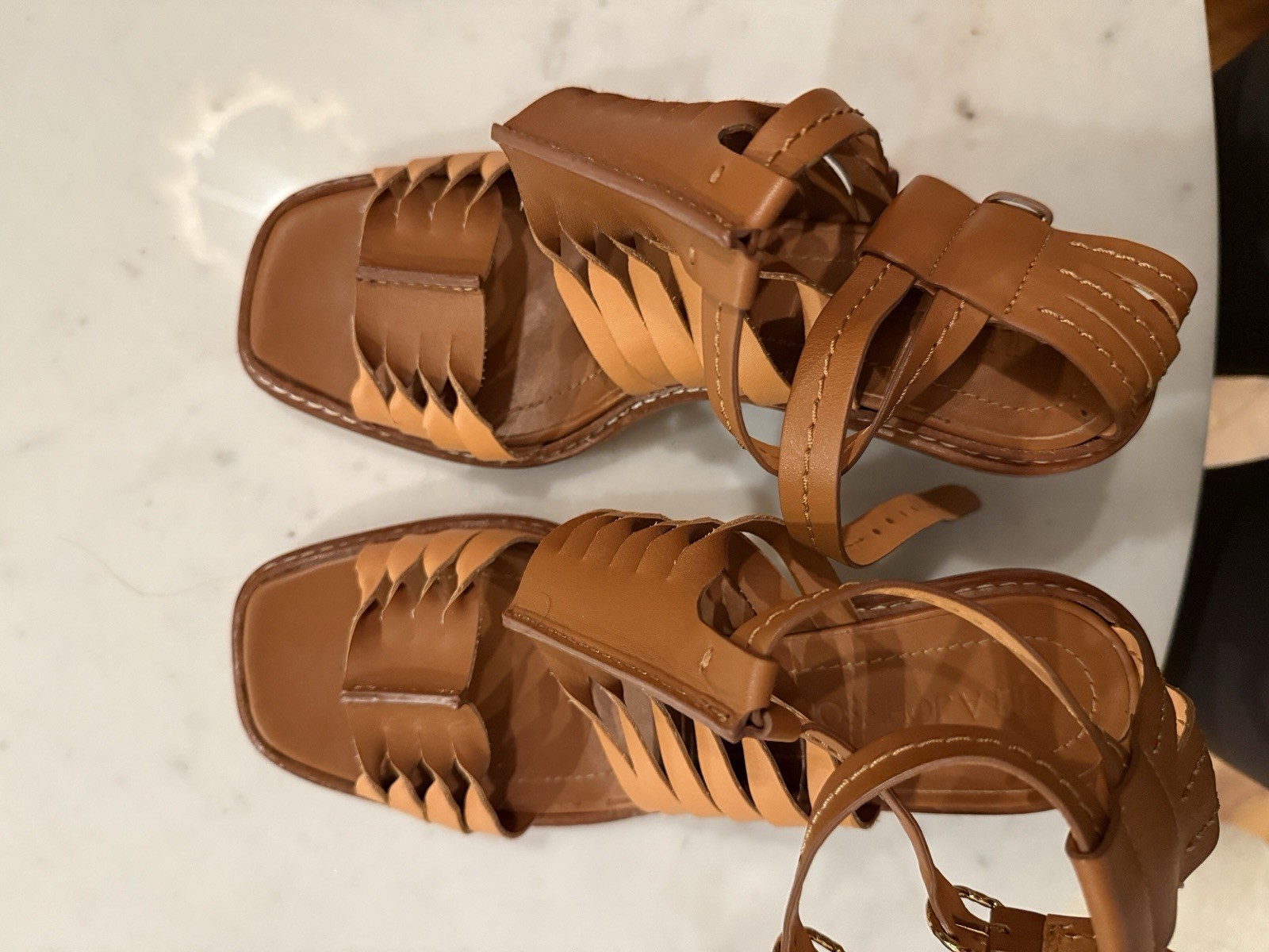 US size 7 fits true to size. Very comfortable. No flaws….normal wear as shown in pics.