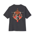 This Men's Oversized back printed streetwear Tee combines style and comfort in a unique design. Made with high-quality materials, this tee is perfect for any streetwear enthusiast. The oversized fit allows for a fashionable and relaxed look, while the back print adds a touch of edginess. Upgrade your wardrobe with this must-have piece. FOR OVERSIZED LOOK PLEASE CHOOSE ONE TO TWO SIZES UP THAN YOUR USUAL SIZE DEPENDING ON YOUR CHOICE. Overview: Comfort and style are the name of the game for these custom boxy t-shirts. Their relaxed fit along with the dropped shoulders add that modern aesthetic that can blend into any occasion. Fabric: 100% airlume combed and ring-spun cotton (fiber content may vary for different colors. Medium fabric (6.0 oz/yd² (170 g/m²)). Fit: The relaxed fit keeps the wearer comfy in both casual and semi-formal settings while the crew neckline delivers that classic, neat style which makes it perfect for accessorizing. Fabric blend: Solid colors are 100% cotton; Athletic Heather is 90% cotton, 10% polyester