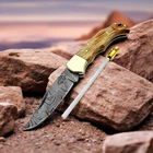 This compact folding knife is a masterpiece! The razor-sharp Damascus steel blade glides effortlessly, while the handcrafted olive wood handle feels smooth and luxurious in the palm. It’s not just a tool—it’s a stunning piece of functional art. Perfect balance, unbeatable craftsmanship, and the unique wood grain makes each piece one-of-a-kind. A must-have for collectors and everyday carry alike!