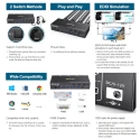 Home Arduino Module Sensor Chips About Us Features: γ Ultra HD 4K@60Hz/2K@144Hz γ USB 3.0 Dual Monitor KVM Switch HDMI Support Resolution ππ@ππππ³. ππ@πππππ³,@πππππ³. 3 computers and 2 monitor switches, also supports connecting 2 computers with different resolutions on the input side, e.g. one with 4K@60Hz and the other with 4K@30Hz, 1440P@60Hz3D, 1080P@60Hz or lower. Note: If your device outputs 4K resolution, please use an HDMI 2.0 cable (cable length not exceeding 1.5 meters) and make sure that both your computer and monitor also support 4K. γ HDMI KVM Switch with 4 USB 3.0 Portsγ The USB 3.0 KVM Switch is equipped with 4 USB 3.0 ports for sharing USB devices such as mice, keyboards, scanners, printers, USB flash drives, and other USB devices. The USB 3.0 version ensures a faster and more stable data transfer, and is a great solution to the problem of many USB devices disconnecting during use. Excellent solution to the problem of many USB devices disconnecting during use. γ Dual monitor kvm switcher supports 2 switching modes γ HDMI kvm switcher dual monitor supports physical buttons and wired control. You can switch computers by pressing the buttons on the panel or using the wired remote control. LED lights indicate which computer is active. Note: Keyboard shortcut (hotkey) switching method is not supported. γ Two display modesγ KVM switch dual monitor hdmi supports extended display mode or copy display mode, in "mirror" mode, the main screen can be copied to the second screen to output two identical screens. In "Extended" mode, you can drag the window on the main screen to the second screen to output two different screens. γ Wide compatibility and easy to useγ This dual-monitor KVM switch is plug-and-play and does not require drivers. Requires each connected computer to have 2 HDMI ports, but there may be many computers, especially laptops, that may not have two 2 HDMI ports, then an adapter is needed, such as USB-C to HDMI, DP to HDMI. γKVM Switch Dual Monitor 3 Computers 2 Monitorsγ This 2 monitor KVM switch allows you to control 3 computers or laptops with just one set of wired or wireless keyboard and mouse, sharing 4 USB 3.0 devices and 2 monitors. Widely used in office, multimedia teaching, conference room and so on. Specification: Product Name: HDMI KVM Switch HDMI version: 2.0 DP version: 1.4 USB Type: USB 3.0 Data Rate: 5Gbps Connection port: HDMI-A/standard DP interface HDMI cable: <1.5 meters (resolution:4K@60Hz 2K@144Hz) DP cable: <1.5 meters (resolution: 4K@60Hz 2K@120Hz) Operating power supply: 12V Plug specification: EU/US/UK (optional) Product size: 15.8*6.6*2.95cm Product material: aluminum alloy Product color: black Package Included: 1*KVM switch 3*USB cable 2*HDMI cable 1*Wired controller 1*User Manual 1*Power Adapter Attention: 1. Due to manual measurement, the product size will have 1-2cm error! 2. Due to the lighting effect and shooting angle, there may be some color difference, please understand! Payment Shipping Refund Payment We accept PayPal only. But we only Accept your Ebay Address ,Please Make sure it's 100% right. Payment must be received in 5 business days of auction closing. Please leave note for your special request (e.g. Colors or Size) in PayPal when you pay the order. Any special request cannot be accepted after 24 hours of payment, because most of orders will be processed instantly and same day dispatched. Shipping Fill your shipping info Refund All package need to wait 30 days (US only n eed 7-10 days) , Please take care it.Less than 30 days,we can't take a refund . If the item is defect when you receive it or you are not satisfied with it, please return it within 14 days for a replacement or money back. But the items must be back in factory condition. Please contact us and double check the return address before you return it. If is item is defective in 12 months, you can return it to us. We will send you a new replacement after receiving the defective item. On Oct 3, 2024 at 10:01:38 PDT, seller added the following information: