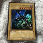 Elevate your Yu-Gi-Oh! TCG collection with the iconic Red Eyes Black Dragon card, a must-have for enthusiasts and competitive players alike. Manufactured by Konami, this Ultra Rare card boasts the formidable Dark attribute, making it a powerful addition to any deck. The card's Effect type adds strategic depth to your gameplay, ensuring that your battles are as thrilling as your collection. Crafted from premium card stock, the Red Eyes Black Dragon features the unmistakable Rainbow Reflective finish that sets it apart visually. While it remains ungraded, the card's excellent state reflects its storied history on the playing field. Note that this piece is not autographed, keeping the focus on its stunning design and rarity.