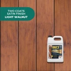 Deck Stain and Sealer in - Combines stain and sealer benefits for comprehensive protection and enhanced natural beauty in a single product. Easy application for long-lasting results. Semi-Transparent Finish – This outdoor wood sealer allows the natural wood grain to show through while providing a beautiful color. Perfect for decks, fences, siding, porches, pergolas, and playsets. Versatile Outdoor Wood Stain and Sealer - Can be applied as a 1 coat or 2 coat system. Apply 1 coat of stain for a flat, natural-looking finish, or 2 coats for a deeper color and rich satin sheen. Superior UV Protection - Infused with nano-technology and advanced UV inhibitors to guard against sun damage, preventing graying and fading while keeping your wood vibrant and protected. Enhanced Water Resistance – This wood sealer outdoor waterproof stain seals wood with a silicone/siloxane additive that prevents moisture damage, extending the life of your wood.