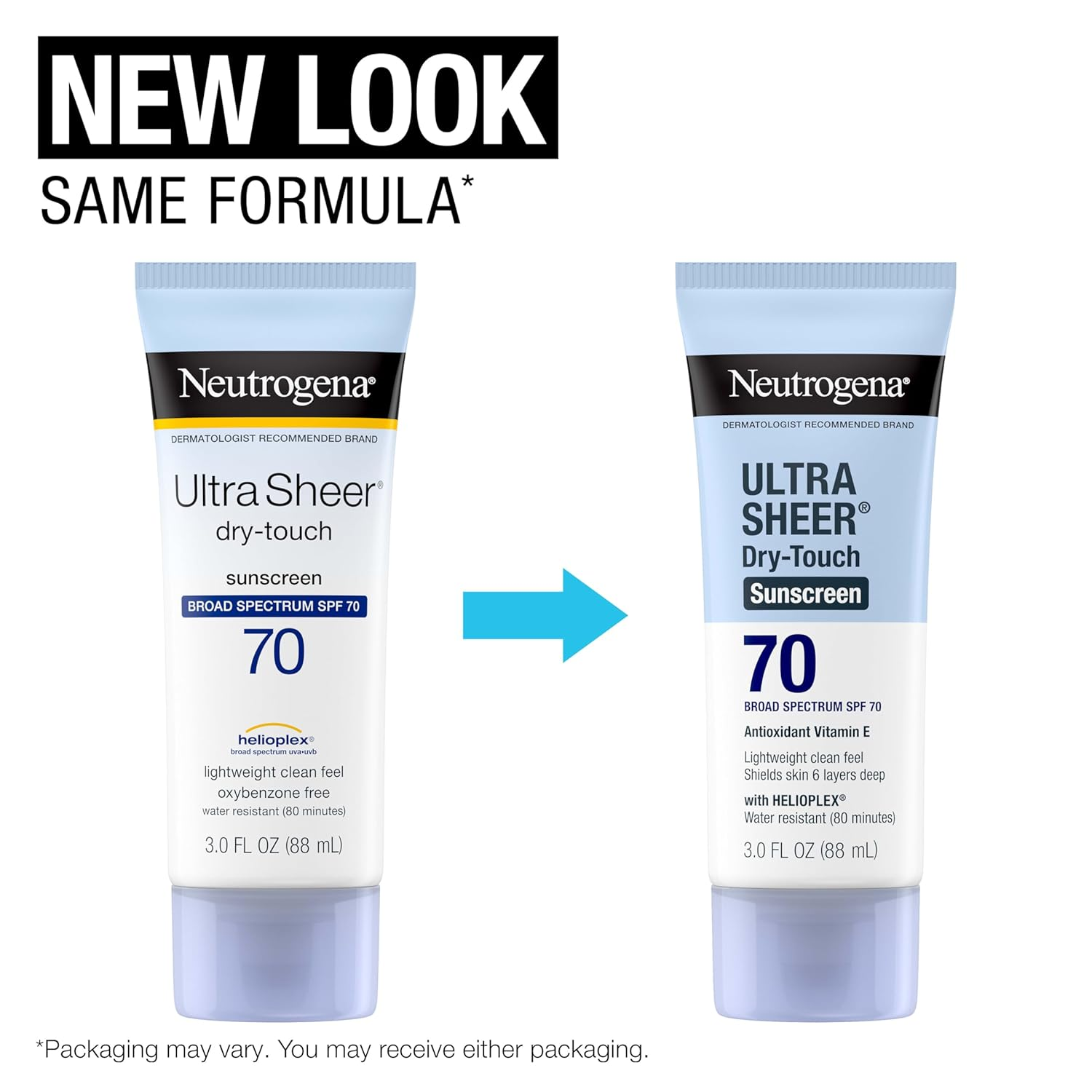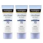 3-fluid ounce travel size bottle of Neutrogena Ultra Sheer Dry-Touch Non-Greasy Sunscreen with SPF 70 for broad spectrum UVA/UVB protection This lightweight and sheer sunscreen is fast-absorbing with Dry-Touch technology for a non-greasy, matte finish that leaves skin feeling clean. The face and body sunscreen is formulated with Helioplex for superior sunburn protection for your skin The Helioplex sunscreen provides superior broad spectrum protection from skin-aging UVA and skin-burning UVB rays. This sunscreen lotion helps prevent sunburn and when used as directed, may help decrease the risk of skin cancer caused by the sun PABA-free and non-comedogenic, this lightweight sunscreen provides powerful face and body sun protection without the heavy finish, making it great for daily sun protection. The convenient travel size sunscreen is perfect for sun protection on the go Non-greasy sunscreen from the #1 dermatologist-recommended suncare brand. This sunscreen is also available in both spray and stick form and can be used at the pool or in the ocean for up to 80 minutes of water-resistance Product Description Neutrogena Ultra Sheer Dry-Touch Sunscreen SPF 70 with Helioplex technology helps prevent damaging UVA rays from penetrating deep under skin's surface. Brand Story By Neutrogena