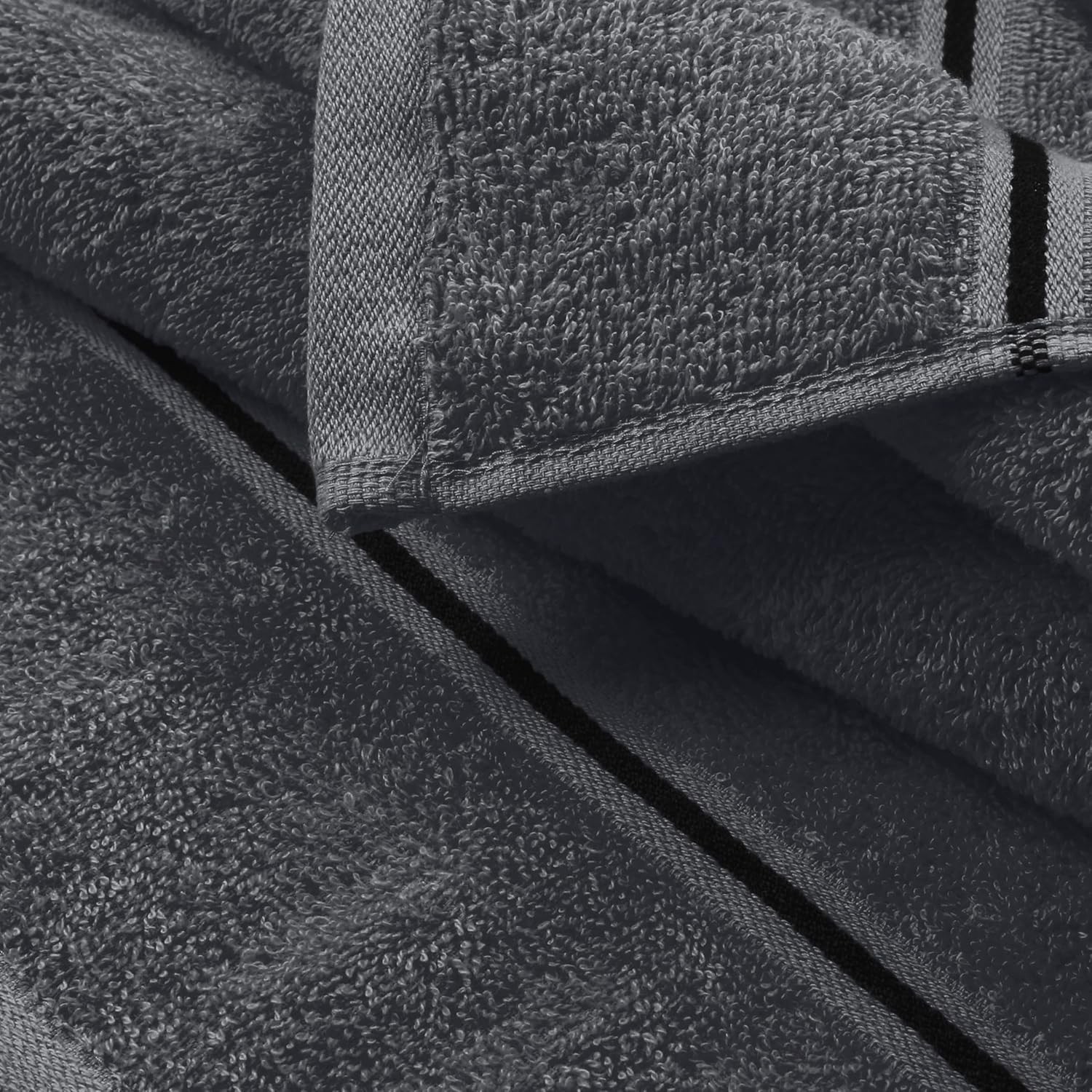 Ultra Soft 6 Pack Cotton Towel Set, Contains 2 6 Piece Charcoal Grey Product Details Color: Charcoal Grey Brand: MyOwn Age Range (Description): All Ages Material: Cotton Product Dimensions: 55"L x 28"W Number of Items: 6 Pattern: Bordered Special Feature: Bagless Product Care Instructions: Machine Wash Shape: Rectangular Size: 6 Piece Set Unit Count: 6.0 Count Fabric Type: 100% Cotton Customer Package Type: [POSSIBLE] FFP Manufacturer: MyOwn Target Audience: All Individuals Item Weight: 2.02 pounds Item model number: 71491 Each set contains 2 oversized bath towels 28x55 inches, 2 hand towels 16x24 inches & 2 wash cloths 12x12 inches 100% Pure cotton for softness, absorbency & durability - Outdoor Lightweight Quick Dry Towel Set Complimented set for daily use, hotel & spa, quick drying & multipurpose usage 100% Natural materials & free from harmful chemicals / materials - safe for you & your family Machine washable & dryable, wash in cold water, tumble dry low - wash separately before first use MyOwn cotton towel sets is a beautiful and carefully crafted product with lot of attention to details. Basic towel, quality product, low cost, everyday use, soft feel and high absorbant. Eco friendly. Its less weight help to consume less water in washing, less energy in drying, less detergent for laundry. Sustainable product without compromising on the comfort and style. Made in a state of the art vertically integrated facility.