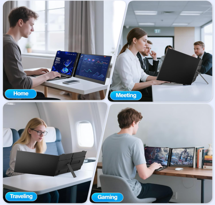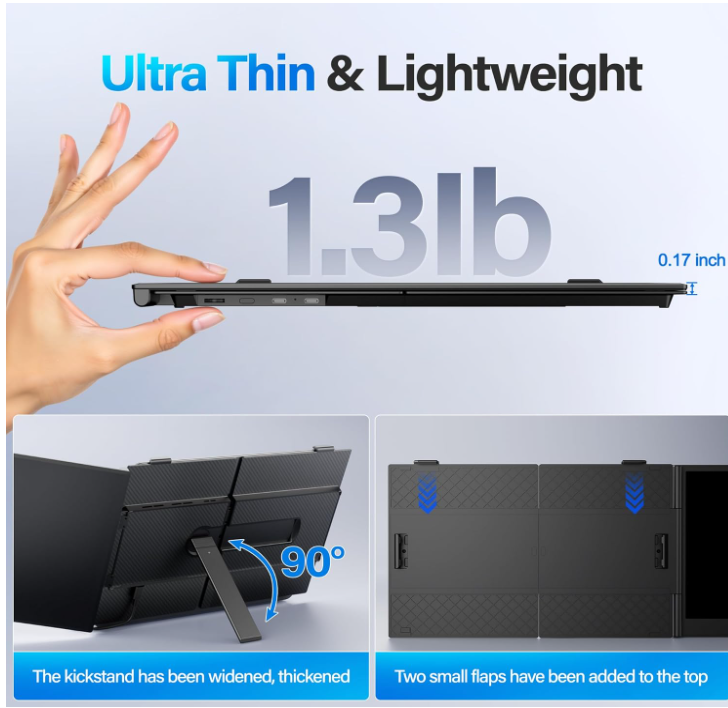 [Ultra thin & Lightweight]The upgraded ultra-slim laptop screen extender is just 4.5mm thick—thinner than most smartphones—and built for true portability. Weighing only about 1.3 lbs, just slightly heavier than a bottle of water, this triple portable monitor fits effortlessly into your bag without adding bulk. Whether you're a frequent traveler, digital nomad, or remote worker, this lightweight screen extender is the perfect productivity companion on the go. The triple monitor is also a thoughtful and practical gift for anyone who needs to work efficiently. [Upgraded Aluminum Alloy Shell & 1080P FHD Display]This portable laptop monitor features a durable and sturdy aluminum casing and a matching aluminum stand. This upgraded extended monitor offers superior heat dissipation and a higher-quality feel and is equipped with a high-performance 14.2-inch IPS panel with a 1920x1080P resolution, 1000:1 contrast ratio, 100% sRGB, and 300 nits of brightness, delivering stunning visual clarity. Whether you're on a video meeting (with built-in speakers), editing content, or watching movies, you'll enjoy an immersive and crystal-clear viewing experience. [Dual screen, Double efficiency] The Sitrunda portable monitor is the perfect dual screen monitor for a laptop, allowing you to open multiple windows simultaneously without switching back and forth continuously on a single laptop screen, improving your efficiency by up to 200%. With this monitor extension for a laptop, you can easily build your own working station anywhere. Very suitable for conference presentations and multitasking. Perfect for gamers, programmers, finance and investment professionals, designers, and anyone who needs more efficient workflows. [Portable Design for Easy Use] This laptop monitor extender operates seamlessly with a plug-and-play mechanism, providing all necessary cables for Type-C and HDMI connectivity. This laptop screen extender monitor is portable and designed for on-the-go professionals. The Dual monitor for laptop supports a 178-degree rotation angle and folds compactly for easy storage in your computer bag. Perfect choice for work, travel, business trip, gaming or video conferences. [Gifted Package and Trusted Service] laptop extended monitor portable has gift package! Each laptop screen extender monitor portable includes 1 screen, 1*Type-C cable, 1 HDMI to USB-C cable, 1*USB-A to USB-C power supply cable, 1 Newbie Quick Guide, 1 instruction and a well made carriage bag. If you have any question about using this product, our professional customer service will help solve your problem within 24 hours!
