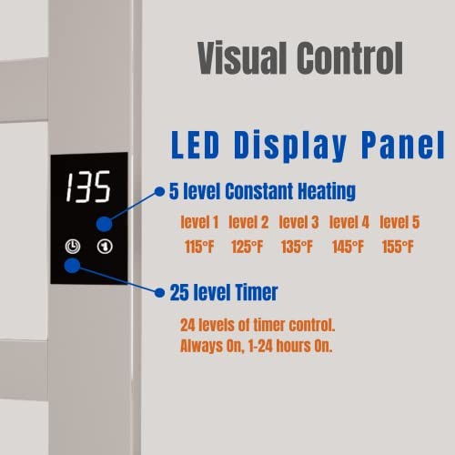 Return Policy Fast Delivery Trusted seller Electric Towel Warmer | Super Thin | with Timer & Temperature Multi-Level Adjustments | Hardwired & Plug-in | 6 Bar Polished Finish Product Description 304 Stainless Steel Appearance: Modern 6 bar super thin 304 stainless steel material with silver mirror finish and laser welded without any sharp edges, also IP 44 class 1 waterproof rating. Performance: Fast Heating and Prevention of Overheating: Built-in Temperature Control feature with 110V, 100W fast heating to reach the designated temperature quickly and prevention of towels from smelling bad. Visual Control: LED Display Panel with 5 level Constant Heating and 24 level Timer. Installation Options: Left or Right Outlet with Hard Wired or Plug In options. : 2 Years against any non man-made damage. Shipping Returns Payment Shipping Shipping is FREE to all addresses other than APO/PO boxes in the lower 48 states. All our stock ships from US-based warehouses. Shipped via USPS or UPS (depending on location and package weight) Unless stated otherwise, all orders will ship within 24-72 hours of your payment being processed. Check our feedback to see the great reviews of FAST shipping we offer. Returns Seller does not accept returns Payment We currently accept payment via eBay managed payments only. Once payment is cleared, we will dispatch your shipment within 1-3 business days. Please refer to the "Shipping" tab for more information regarding shipping speed to your destination.
