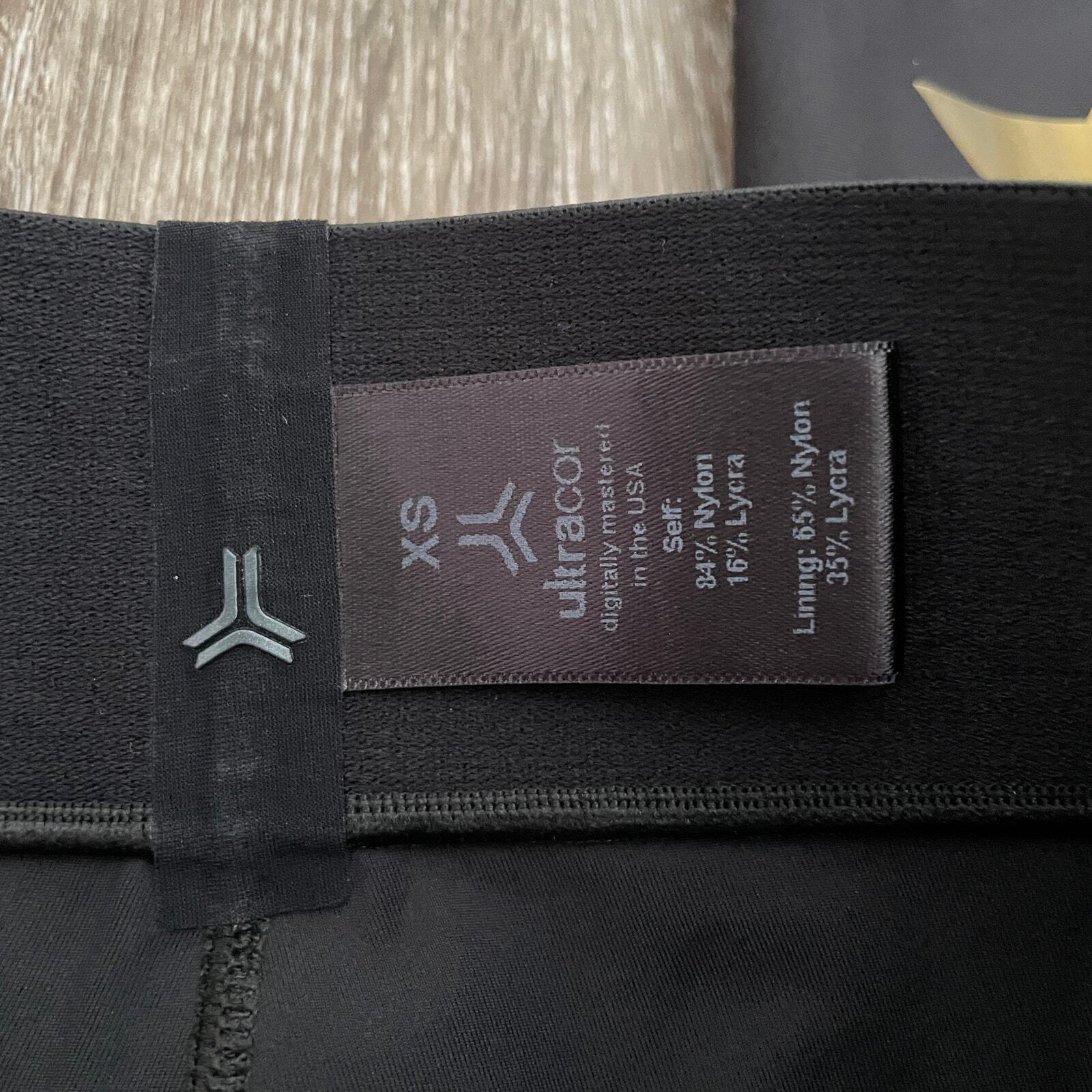 Ultracor Lux Essentials Star Knockout Ultra High Legging in Nero/Gunmetal Black Gold Excellent used condition No visible stains or worn spots There's a loose thread along the crotch area - see as pictured. Size: XS Color: Nero/Gunmetal *Color may differ in photos due to lighting. Bonded star detail Second-skin like fit & fabric Built-in shapewear High stretch compression performance fabric Nylon/Lycra Machine wash cold. Measurements (laid flat across): Rise: 9" Inseam: 25" Waist (across): 11.25" Total Length: 34"
