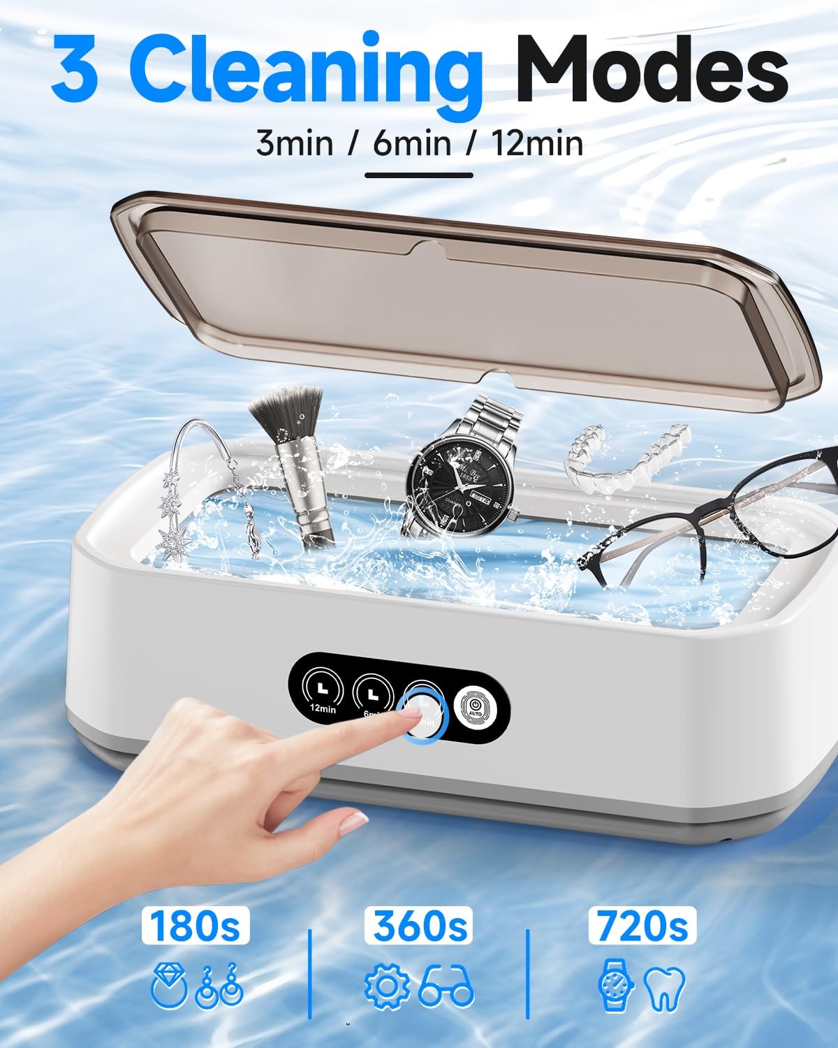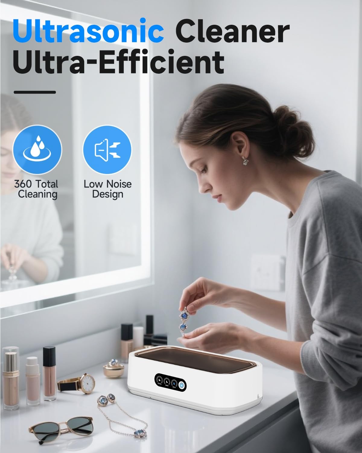 Ultrasonic Jewelry Cleaner with 3 Modes & Digital Timer for Deep Cleaning