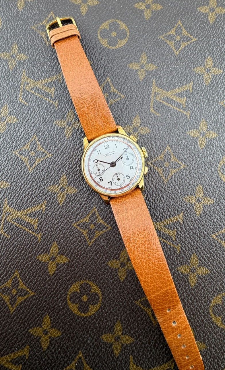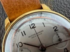 PROPONIAMO; -Marca: ULYSSE-NARDIN CHRONOGRAPHE -Cassa: ORO GIALLO DA 35,5MM SOLIDA , FONDELLO A SCATTO ORIGINALE -Movimento :VALJOUX 71 RUOTA COLONNA , ORIGINALE -Vetro:PLEXY -Corona:ORIGINALE -Ghiera:NO -Tasti: OLIVA ORIGINALE -Quadrante: BITONALE -Lancette: ORIGINALE -Cinturino/Bracciale: PELLE MARRONE ADATTO AD ANSE FISSE , 18MM -Scatola e documenti: NOSTRA POCHETTE IN VELLUTO COMPRESA -Condizioni : OTTIME -Revisionato:SI -Uomo/donna/unisex:UOMO PER QUALSIASI DUBBIO CONTATTATEMI ,RISPONDEREMO IL PRIMA POSSIBILE