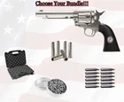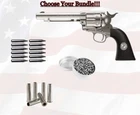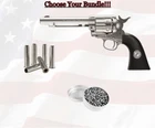 template UX 2254051 Colt Peacemaker SAA45 CO2 Pellet .177 Air Revolver w/ Bundle Options Description: No other revolver has captured the American imagination like the Colt Peacemaker®. The old Single Action Army had a long life on the frontier, and an even longer life in Hollywood. And now you can shoot an authentic Colt, without the expense or kick of the .45. The Colt Peacemaker® six-shooter is a tack-driver that fires pellets from individual cartridges. The CO2 is housed in the grip. This fully functioning replica is as much fun to look at as it is to shoot. 150 Years! The Colt Peacemaker has now officially been around for 150 years. Features: Full metal heavy weight frame Beautiful, realistic looking nickel finish Imitation ivory grips Realistic single action revolver action 6 shot cylinder with individually loaded cartridges Fixed front sights Functional hand ejector For use with .177cal pellets ONLY Dimensions: 10.75" Muzzle Velocity: 410 FPS (Measured w/ .177 pellets and Co2) Magazine: 6 Single Shot Cartridges Gas Type: 12 Gram Co2 Cartridge Firing Mode: Single Action, Safe System: Gas Powered Hopup: NA *Please note that the specific brands provided may vary based on current availability.* CHOOSE YOUR BUNDLE!!! Bundle 0- Pistol ONLY Bundle 1- Add .177 Pellets, 6ct Shot Shells Bundle 2- Add 12g CO2, .177 Pellets, Shot Shells Bundle 3- Add Cleaning Kit, Pellets, CO2, Shot Shells Bundle 4- Add Target, Shot Shells, Pellets, CO2 Bundle 5- Add Hard Case, Pellets, CO2, Shot Shells Bundle 6- Add Shot Shells, Cleaning Kit, Target, Pellets, Case, CO2 Disclaimer: Due to delays in transit times when shipping USPS Hazmat Mail to Alaska and Hawaii, please expect upwards of 3-4 weeks to receive your order. This is due to the classification of the CO2 cartridges as hazardous mail, which must travel by surface transport only (trucks/barges). If you are located in Alaska or Hawaii, please send us a message to inquire about shipping options, as our default listing excludes these states. We welcome your inquiries, feedback, or requests regarding our products. You can easily get in touch with us through eBay messages at any time. Our team is dedicated to ensuring your satisfaction, so please don't hesitate to contact us with any questions or concerns. Your complete satisfaction is our top priority This listing complies with eBay’s air gun guidelines found here and I will only sell and ship air guns to buyers in jurisdictions where permitted by applicable laws http://pages.ebay.com/help/policies/firearms-weapons-knives.html