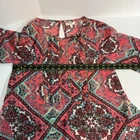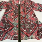 This is a coral and teal paisley blouse by UMGEE. It is made of 65% cotton and 45% polyester chiffon fabric. The blouse has a round neckline, 3/4 puff sleeves, and a pullover closure. It features an asymmetrical hem and pointelle knit accents with buttons. The blouse is designed with a tunic style and is perfect for summer, fall, and spring. It is ideal for travel, wedding, party/cocktail, casual, and workplace wear. The blouse is breathable and sheer. Pre-owned in very good condition, no stains, tears or holes. Smoke free environment We try to ship same day or next day Feel free to message us with any questions