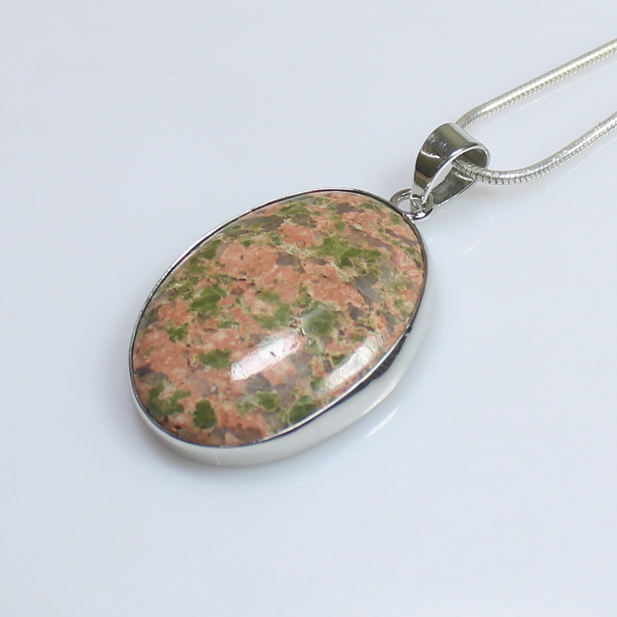 ARBIYA GEMS JEWELRY TYPE : PENDENT WITH SILVER CHAIN STONE : NATURAL UNAKITE SIDE STONES : NO NECKLACE SIZE : ALL SIZES AVAILABLE NECKLACE WEIGHT : 13.20 GRAMS INCLUDING CHAIN NECKLACE METAL : STERLING SILVER METAL PURITY : 925 TREATMENT : NATURAL COUNTRY OF ORIGIN : INDIA HANDLING TIME: 1-2 DAYS DELIVERY TIME : WE USUALLY TAKES 15-25 DAYS BUT MOSTLY IT DELIVERS TO CUSTOMERS WITHIN 15 DAYS RETURN POLICY : RETURN ACCEPTED ON MANUFACTURING DEFECT WITHIN 30 DAYS . RETURN GIVEN AS MONEY BACK OR REPLACMENT FEEDBACK POLICY : PLEASE LEAVE US A POSITIVE FEEDBACK IF YOUR ITEMS DELIEVERED IN GOOD CONDITION