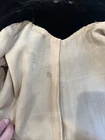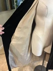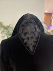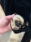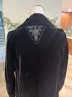 Make a statement at your next formal event with this stunning black velvet opera coat. The long coat features an embroidered design on the front and is made with a cotton rayon lining for added comfort. The button closure and long sleeves provide a classic and retro look, making it perfect for any season. This unbranded woman's jacket is a size XS and is designed for regular size women. The solid pattern and designer style make it a must-have for any fashion-forward woman. Excellent condition overall please see photos of lining there are rips in the lining under the armpits, and I’ve noticed one on the inner part of the sleeve and a couple stains and to wear spots on the hidden part of the collar Bust 19.5” Shoulder 15” Sleeve 23” Length 46” N5df35