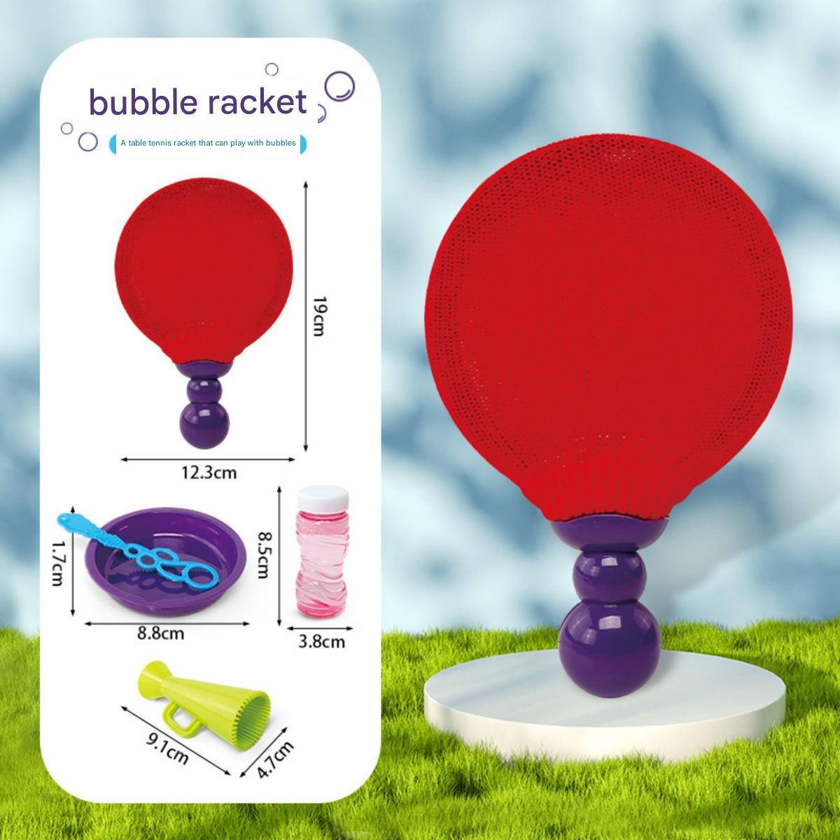 Bubble Blowing Racket Set Packing Size: 20*20*5cm Packing Weight: 170g Packing List: 2* Soft Bubble Racket, 1* Large Bubble Stick, 1* Tray, 1* Special Bubble Solution, 1* Soft Bubble Charge Description: New Bubble Game: Bounce Bubble "Pong" - You can use our soft racket and special bubble solution to hit the bubbles; but be careful to hit the bubbles gently, otherwise the bubbles will also burst; this will be a novel and interesting bubble game Easy to Use: Pour the bubble solution into the plate, dip the bubble sticks of various shapes into it, and enjoy the fun of creating colorful bubbles; in addition, you can gently catch the bubbles with the knitted racket and let them bounce repeatedly on the racket Safe and Non-toxic: Our bubble stick bulk set is made of non-toxic materials and is safe for children; but be careful not to let the bubble water/solution fall into your child's mouth; this bubble toy is recommended for children over 3 years old. Fun bubble toys: Blowing colorful and fun big bubbles can bring more joy to various events, such as weddings, birthdays, beach vacations or children's parties; Create more laughter with colorful bubbles, especially summer and underwater theme parties