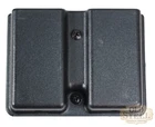 The Uncle Mike's Double Magazine Carrier is designed to hold two magazines. It is made of Kydex and is black. The magazine pouch is ambidextrous and is suitable for single stack magazines. It is manufactured in the Philippines.