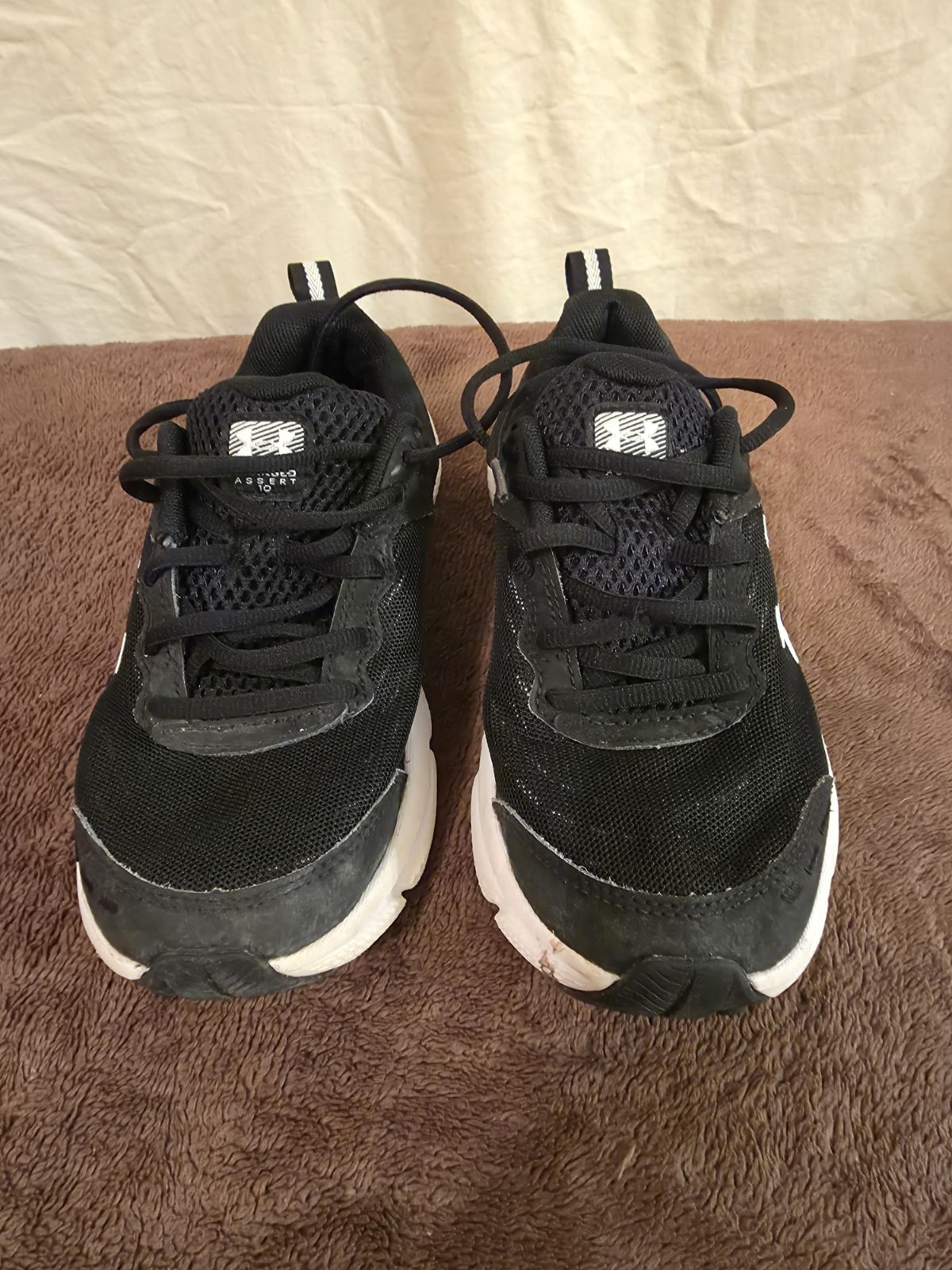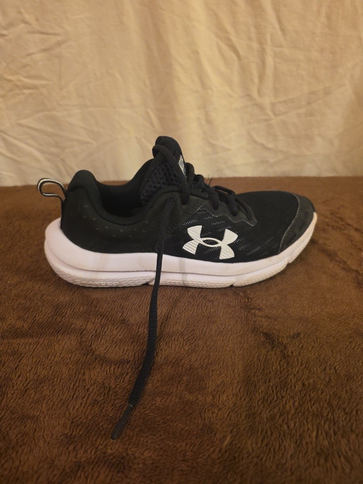 The Under Armour Assert 8 Shoes in youth size 4 for kids are designed for athletic running and everyday wear. These black trainers feature a low top design with a lace-up closure for a secure fit. Made with a durable nylon upper and rubber outsole, these sneakers offer both style and functionality for active boys. The standard shoe width ensures a comfortable fit for all-day wear. Ideal for sports or casual activities, these Under Armour shoes are a versatile choice for young athletes.