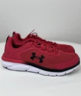 Elevate your boy's athletic performance with these Under Armour BGS Assert 9 sneakers in a striking red color. These lace-up shoes feature a low-top shoe shaft style, round toe shape, and wide size 7Y fit for boys. The synthetic upper material provides a lightweight feel, while the rubber outsole material offers durability for running and jogging activities. These sneakers are perfect for activewear and are suitable for summer, fall, and spring seasons. The shoes are designed with a solid pattern and logo accents, and the fabric lining material ensures comfort. The insole material is also made of fabric, and the cushioning level is minimal. The shoes are a great addition to any boy's sports wardrobe and are perfect for school and sports-themed occasions. None of the pictures have a filter on them so please look through them.