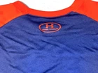 Under Armour Blue Orange Long Sleeve Heat Gear Loose Fit Athletic Shirt Top ~ Youth Boy's Size YXL = Youth XL. Measures: 20" flat across the front from underarm to underarm unstretched and 25.5" from shoulder to bottom hem.