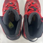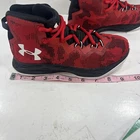 Under Armour Boys Lightning High Top Basketball Shoes in size 4Y are designed for boys. This athletic sneaker is in a black and red color scheme, featuring a high top shaft style. It is part of the Under Armour Lightning product line and is suitable for basketball performance. In great condition Any flaws pictured