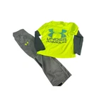 This is a two-piece set for boys size 4 by Under Armour. It includes athletic pants and a top with the UA logo. The set is in gray and yellow colors, made of 100% polyester fabric. The pants have a pull-on closure and a solid pattern, suitable for activewear or casual occasions. The outfit is designed for athletic performance and features the UA Under Armour Words character family. in good condition All Measurements Are Approximate Please email us with any questions! ** LIKE THE ITEM BUT NOT THE PRICE, REASONABLE OFFERS ACCEPTED