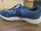 This is a pair of Under Armour Charged Engaged Athletic Shoes in a men's size 9. The shoes have a lace-up closure and a low-top shoe shaft style. They are designed for a variety of occasions, including activewear and sports. The outsole material is made of rubber, and the lining and insole materials are made of fabric. The shoes are breathable and have a standard shoe width. The Under Armour Charged Engaged Athletic Shoes are suitable for walking, cross training, running, and jogging. They are available in a solid blue and gray color and have a rubber cleat type. The shoes are part of the Under Armour Charged product line and were manufactured in Vietnam in 2020.