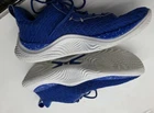 These are Under Armour Curry Flow basketball shoes in team blue, size 11.5 for men. The sneakers are designed for athletic performance, specifically for basketball.