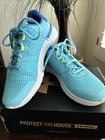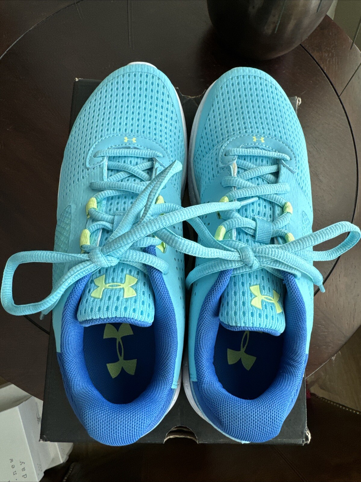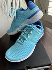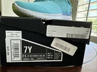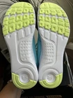 Brand new in box. My daughter just skipped a size. She has had many sizes of this exact shoe and loved them. Very lightweight! Wash up well. Cute two-color style!