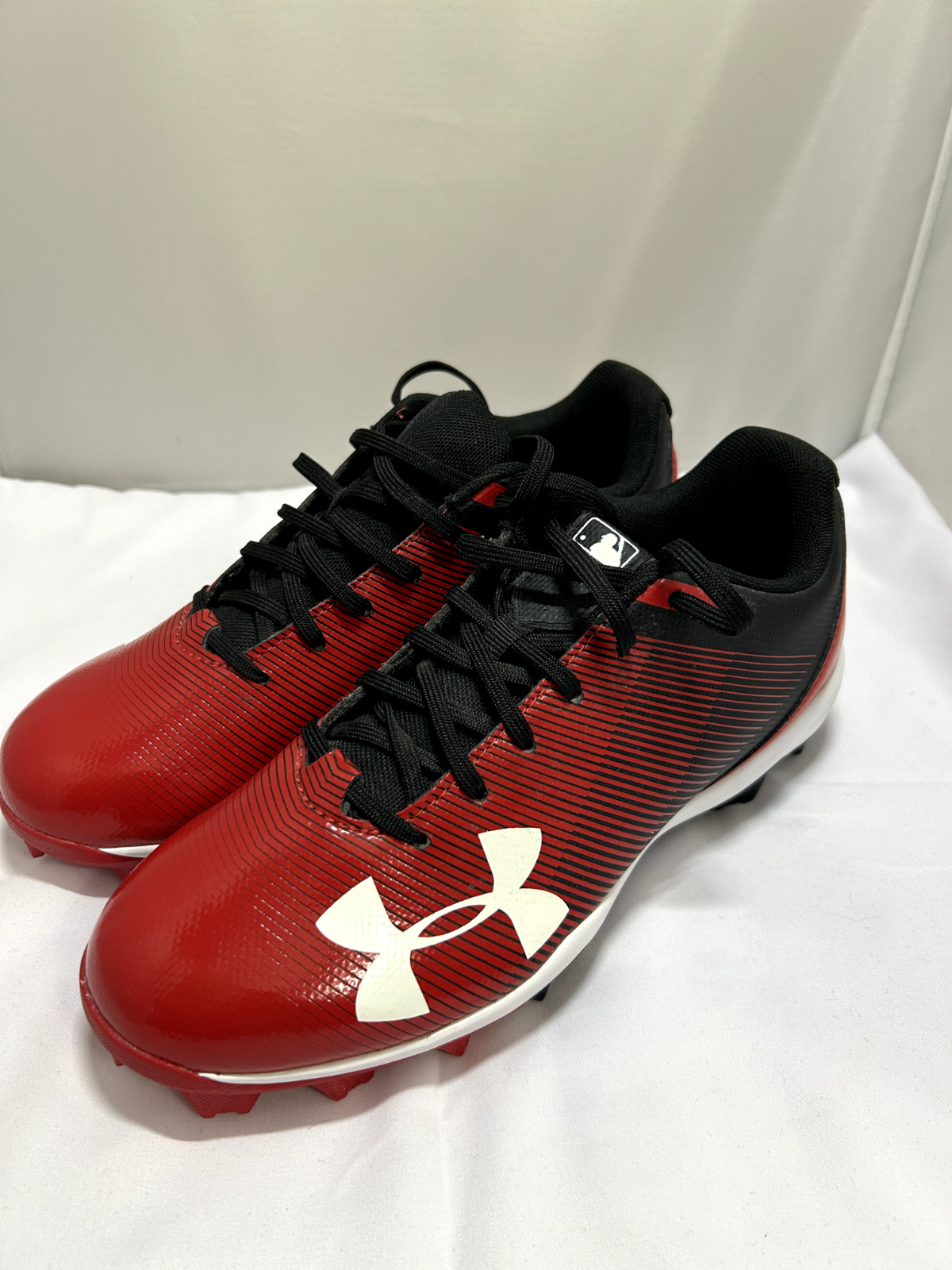 Under Armour Leadoff Low RM Youth Baseball Cleat Red Black 1297316 Y5 Shoe Size : Y5 Shoe Color : Red / White / Black Defects Noted : None • The Product You See Is What You Get • Pet Free and Smoke Free Home • Product Will Be Shipped Same Day or Next Day Remember to come back and check out itsmacsplace!