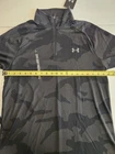 The Under Armour Men's 1/4 Zip Pullover Velocity Jacquard in Black Camo, size Medium, is a versatile and stylish activewear top for men. This pullover features a 1/4 zip turtleneck neckline, long sleeves, and a breathable fabric blend of polyester and polyester elastane. Ideal for outdoor activities in winter, fall, or spring, this pullover is perfect for walking, hiking, or running. The black camo pattern adds a sporty and classic touch to the style, making it a must-have for any active man's wardrobe.