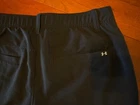 rear portion of waistband, corner to corner, when laying flat: 15.5" inseam: 31.5" outseam: 42" leg opening, side to side at hem: 7.75" 100% polyester excellent used condition solid black color