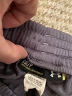 Under Armour Men's Loose Gray Track Sweat Pants with Black Piping Small S. Son wore them once at bonfire. See small hole from amber back side of leg