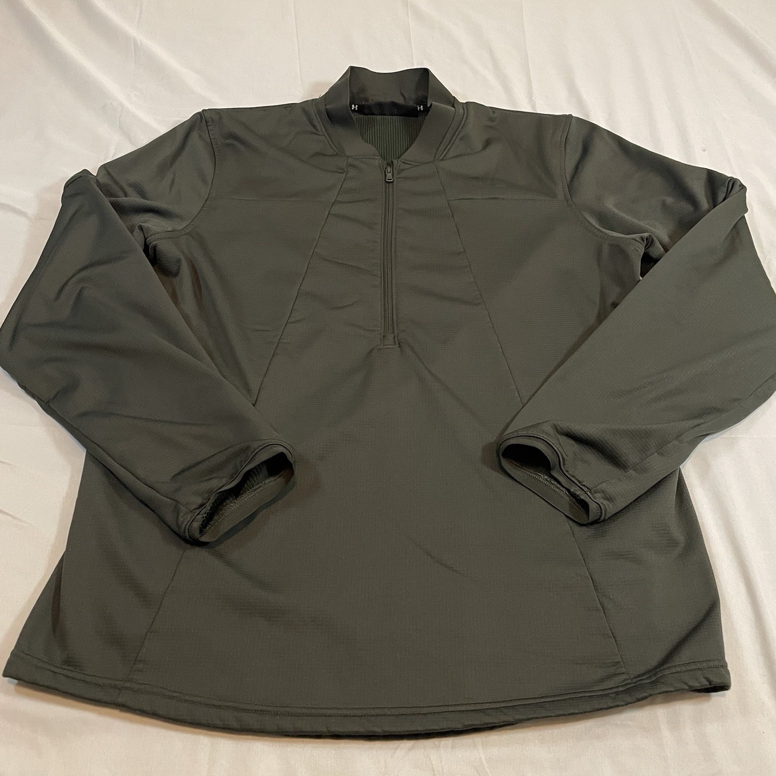 The Under Armour Men's Tech 1/2-Zip Cold Gear Pullover in size Large is a stylish and functional jacket perfect for activewear. Made of polyester with a zip closure, this pullover is designed for men and features a half-zip style. The green color adds a pop of color to your wardrobe, and the Cold Gear product line ensures quality and performance. Ideal for outdoor activities or casual wear, this pullover is a versatile and comfortable addition to any man's wardrobe.