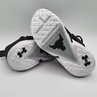 Under Armour UA Project Rock 5 Training Shoes US 4Y Black/ White 3025437-003 Watch the next generation of Kids find their boundaries and then push right through them with the Under Armour Project Rock 5. Featuring responsive UA HOVR cushioning, these sneakers reduce impact and deliver superior energy return so your grade-schoolers can float through cardio, power through their lifts, and dominate their workouts. The UA TriBase maximizes ground contact and provides flexibility and grip during lifts. Sporting a design approved by Dwayne ‘The Rock’ Johnson, the Under Armour Project Rock 5 puts a shot of adrenalizing speed and energy into your young ones everyday workout. Durable engineered mesh upper provides a lightweight and structured feel. Plush knit collar delivers maximum comfort. Molded TPU heel-to-midfoot strap offers stability and a locked-in fit.