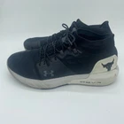 Under Armour Project Rock Men's size 10 Black and White Hovr Sneakers. Under Armour Project Rock brand men's athletic shoes in a size 10. "Hovr" style sneaker. Black and white upper with white soles. Project Rock logo at the heel. In great pre-owned condition, see photos for more details.
