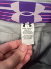 Score a home run with these Under Armour softball pants for youth in size small. These pants are perfect for girls who want to stay comfortable while playing baseball. The pants are made from high-quality materials and feature the signature Under Armour brand. The pants are designed to keep you cool and dry, thanks to their heat gear technology. The pants come in a stylish gray and purple color combination, making them a great addition to your sports wardrobe. They are perfect for baseball and softball, and are made in Indonesia. Get ready to step up your game with these Under Armour softball pants.