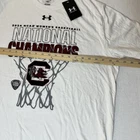 General Notes Color(s) may slightly differ due to monitor settings and lighting. Please check out our other listings as you may be surprised at what you find. Please read the item description and view all the photos. The photos will provide a good representation of the item (see the first note above about colors). Any flaw(s) will have a dedicated photos to show the flaw(s) You may want to compare the measurements of this item to something you already have that fits. If you experience a problem with your item, please contact us so that we can attempt to fix the issue promptly. UA South Carolian Gamecocks Women's National Champs T-Shirt Men’s XL Company: Under armour Condition: New With Tags Color: White Style: Regular Fit Sleeves: Short Sleeve Collar: Crew Neck Material: Cotton Size: XL (Extra Large) Sleeve Length: Short Sleeve Shirt Length: 30.5” (from base of collar to bottom of shirt) Shirt Width: 23” (from pit to pit) Wash Instructions: Machine Wash 2024 NCAA Women's Basketball NATIONAL CHAMPIONS and Team Logo graphics on front in Maroon and Black See photos for measurements and shirt details and appearance Measurements are approximate (see photos) Item Description from the Seller Add a commemorative tee to your South Carolina gear with this 2024 Women's Basketball National Championship piece and show your pride in style. This clean white tee with maroon and black printed graphics make for a nice look. This Men's Size XL is New With Tags. Not many of these left, so Buy t Now, here. Inv. #0414