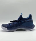 3022893-409 Elevate your basketball game with these navy blue Under Armour Curry 6 sneakers. Designed for comfort and performance, these sneakers feature a mid-top shoe shaft style and a lace-up closure for a secure fit. The rubber outsole provides traction on the court, while the synthetic upper material ensures durability and support. Step up your style with these limited edition sneakers, perfect for both casual wear and athletic activities. With a range of features including breathability, lightweight design, and a solid pattern, these shoes are suitable for all seasons. Whether you're a fan of Steph Curry or simply looking for a versatile addition to your shoe collection, these Under Armour Curry 6 sneakers are a must-have.