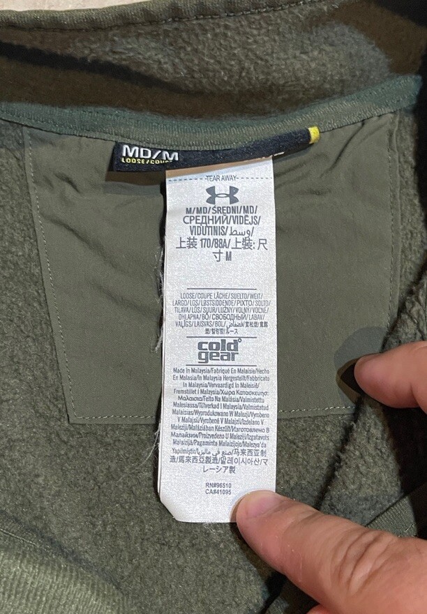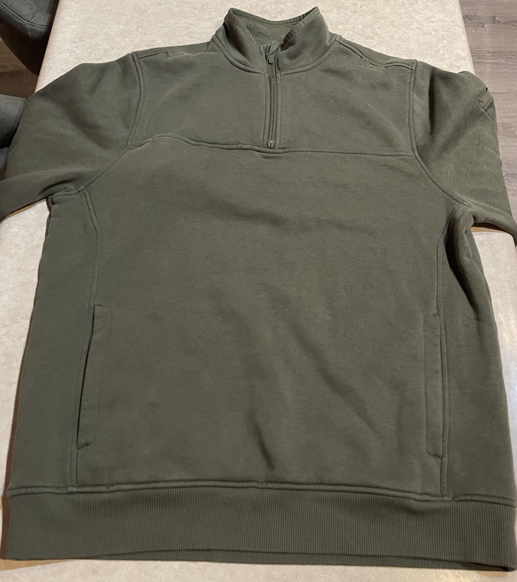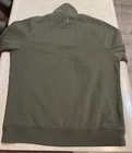 This Under Armour Storm Cold Gear Fleece Pullover in green is the perfect addition to any outdoor activity. The 1/4 zip closure and collared neckline provide comfort and warmth, while the long sleeves and fleece fabric ensure maximum warmth. The pullover is made of polyester and features the Under Armour brand logo. It is a size medium and has a solid pattern with no other characters. This sweatshirt is ideal for golf or any other outdoor activity. The product line is Under Armour Storm and it is made in Malaysia. This pullover is in good preowned condition, with light signs of wear. Please see ALL photos for a better idea on condition, any measurements, or details to the pullover.