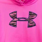 Under Armour Storm Women's Pink Kangaroo Fleeced Pullover Hoodie Jacket Medium Brand: Under Armour Size: M/L see measurements Color: Pink and black Pattern: Solid Condition: Preloved, in excellent condition Features: Pullover style hoodie with drawstrings Embroidered logo on front Kangaroo pockets Long sleeves Ribbed cuffs and hem Fleece lined Style # 1260127 Flat Lay Measurements Pit to pit: 20" Length: 25"