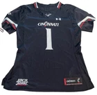 Show your support for the Cincinnati Bearcats with this officially licensed Under Armour UC football jersey. The black jersey features the team's logo on the front and Sauce Gardner's name on the back. It's made for women and comes in a size medium, perfect for fans of all sizes. This jersey is perfect for the NCAA Championship game or any football game, for that matter. It's made in Vietnam and is an authentic Under Armour product. Get yours today and show your love for the Cincinnati Bearcats! This jersey is in good preowned condition with little sign of wear. Please see ALL photos for a better idea on condition, any measurements, or details to the jersey.